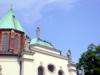 Šī celtne ir trīsdaļīga. Divi lieli torņi ir pārklāti ar baroka tipa jumtiem. Apakšā
